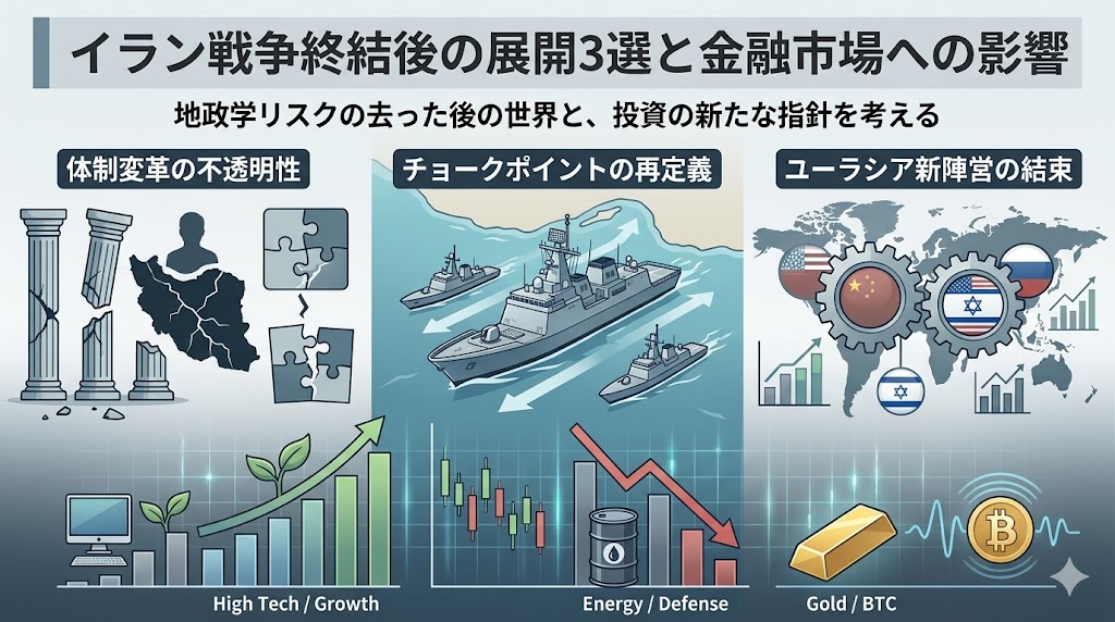 - 仮想通貨: 今回の紛争で「検閲不可能な資産」として証明されたビットコインは、戦後の不透明な経済状況下で、ゴールドに代わる「オルタナティブ資産」として機関投資家のポートフォリオに組み込まれやすくなります。